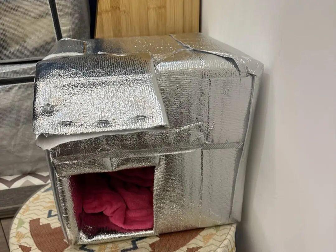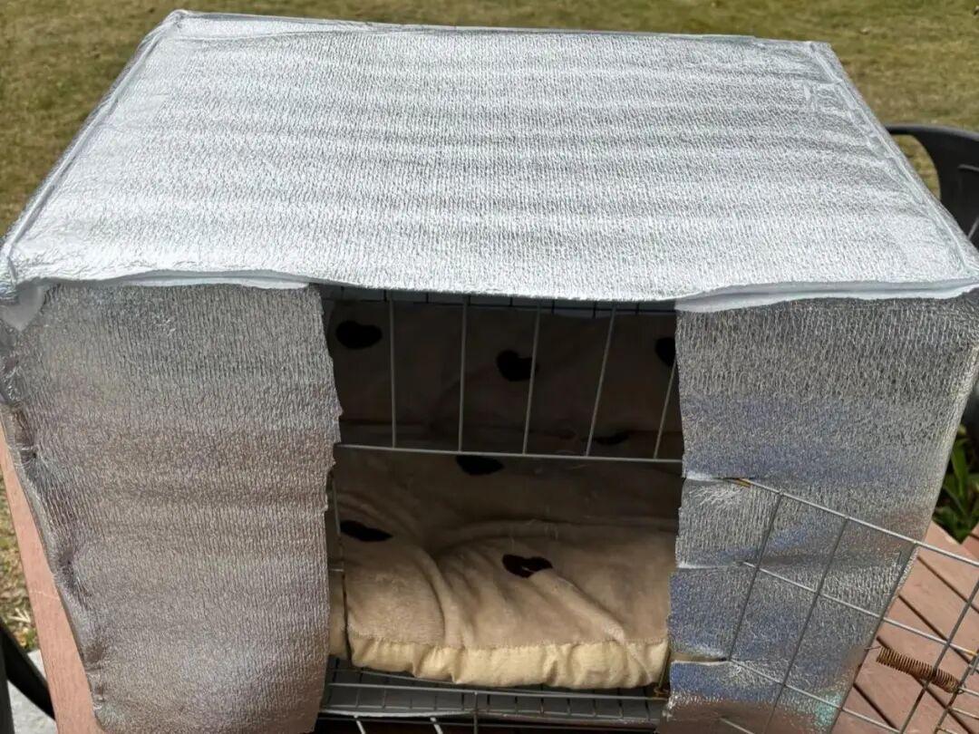 如果有寵物的籠子,我們只需要在寵物籠子的外面貼上外面保溫袋,就形成一個非常好的溫暖小屋。