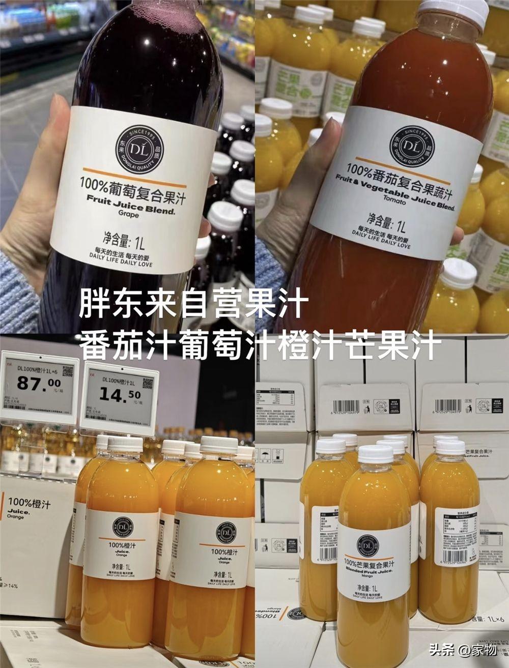 胖東來有很多複合果汁都很好喝,我最喜歡的是葡萄的和番茄的,一個水果汁一個蔬果汁,都是100%原榨,甜度剛好而且不會覺得有香精的味道,我真是買了又買,哦對,橙汁芒果汁也不錯,喜歡的可以試試。