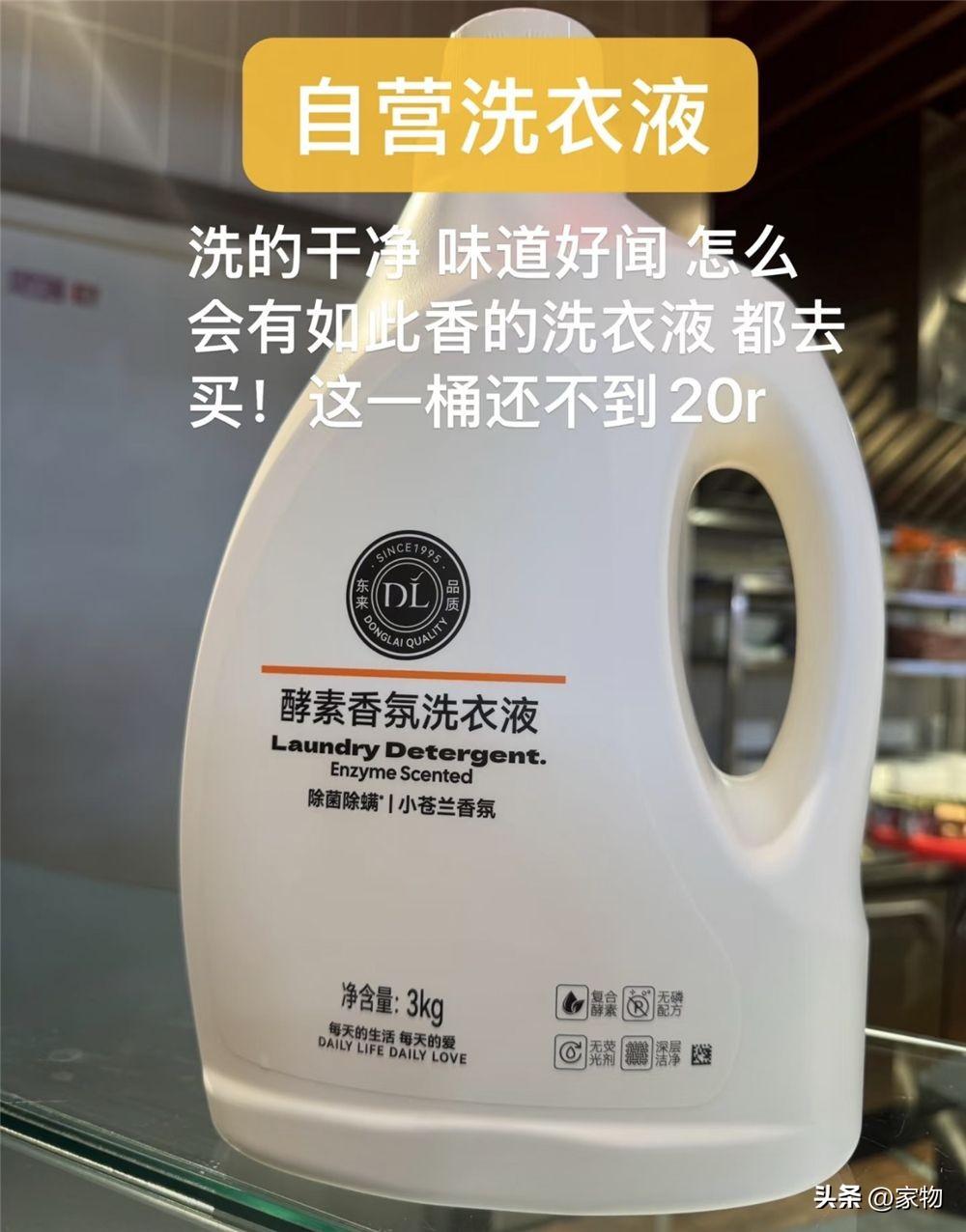 我記得胖東來最火的那陣子去逛,很多外地來的人即便是背,也要不遠千里迢迢背上一瓶這洗衣液回去,這三公斤一大桶還不到20塊就不說了,最關鍵是清潔能力超強,而且還特別好聞,香味比較柔和不刺鼻,真是絕了!