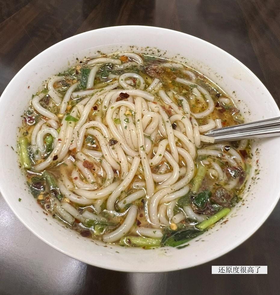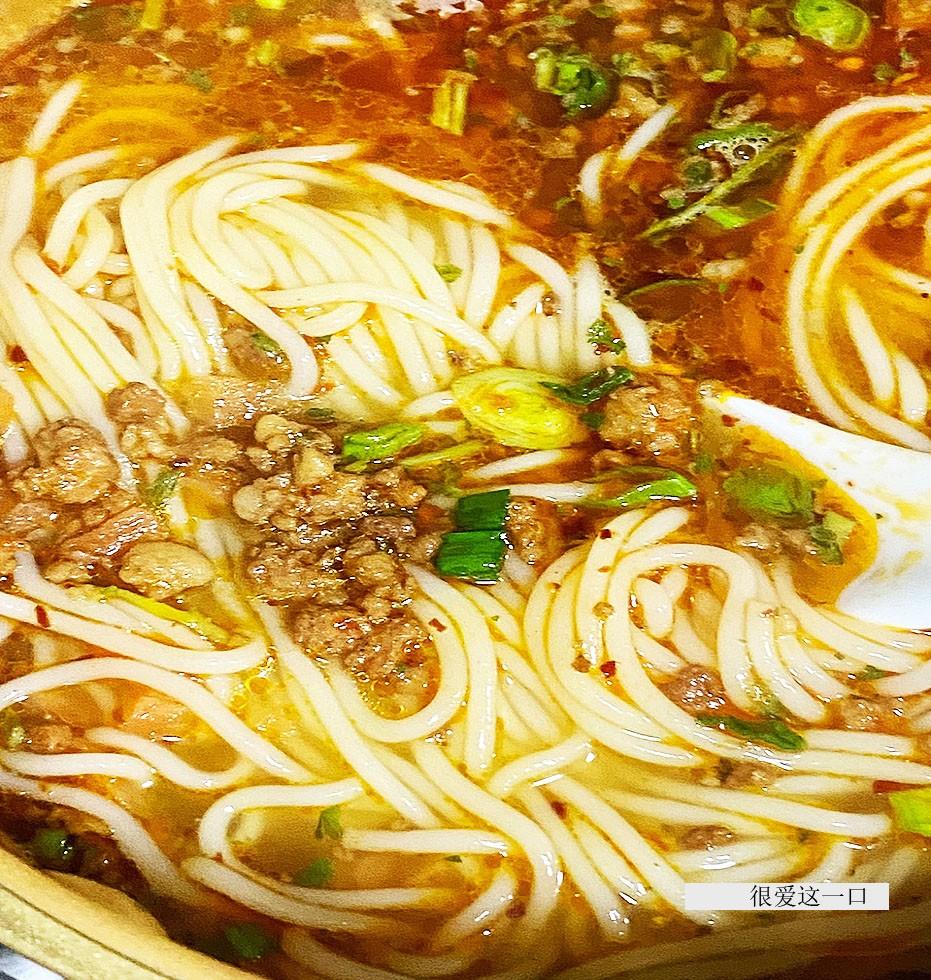它最大的亮點就是那包實實在在的肉醬,能看到清晰的肉粒,用豬油和多種香料炒制,醬香濃郁,鹹鮮適口。
