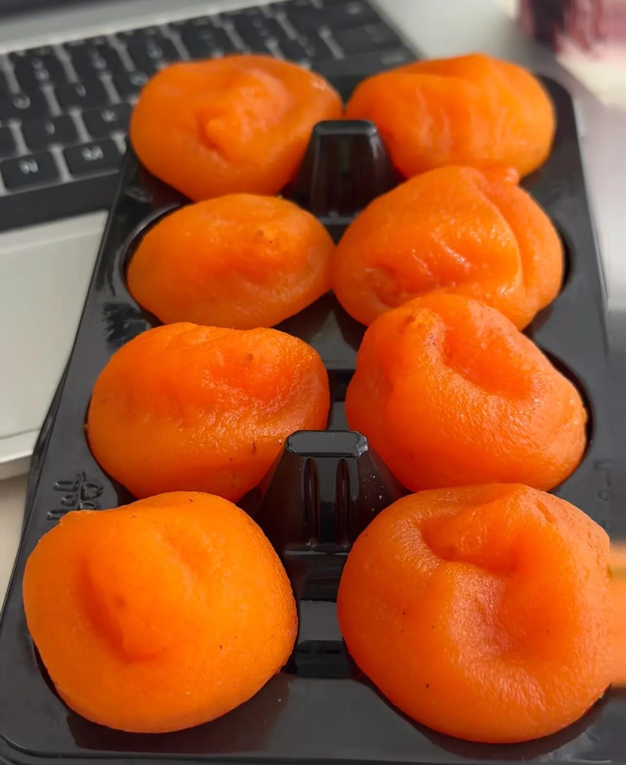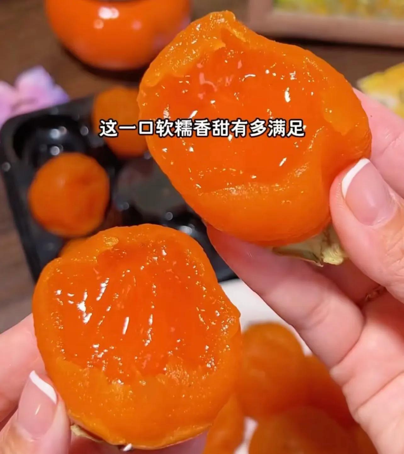 柿子還是那個富平尖柿,換了個喫法,就能讓人一口淪陷。它的祕訣就在於冷凍,喫之前提前拿出來,半解凍的時候,就會變成完美的流心冰柿。