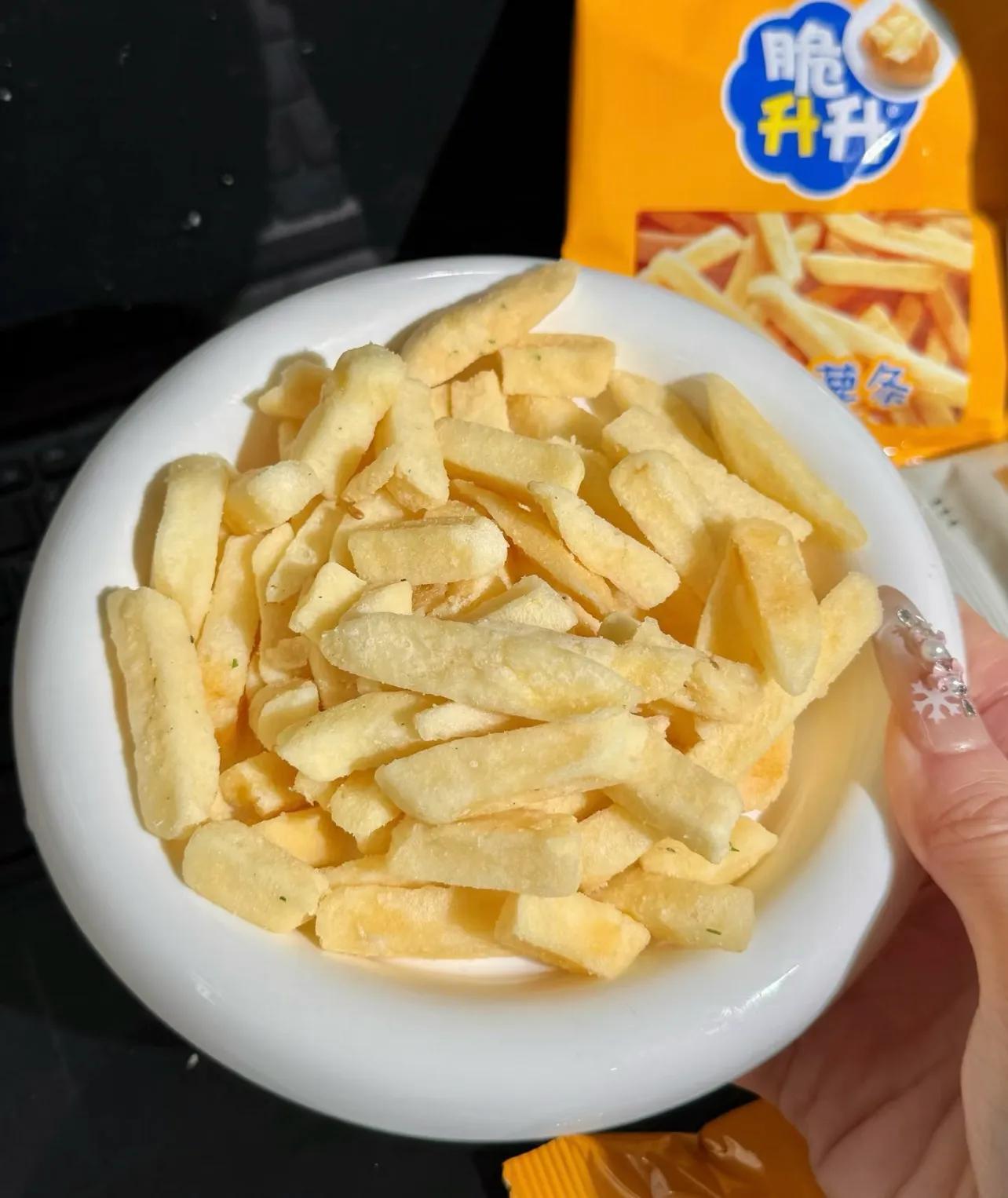 這麼做的後果就是,巨!香脆!因爲是原切土豆條,保留了紮實的口感,相比薯片,我很少喫薯條的,都被它給征服了,土豆味特別濃,而且不油。