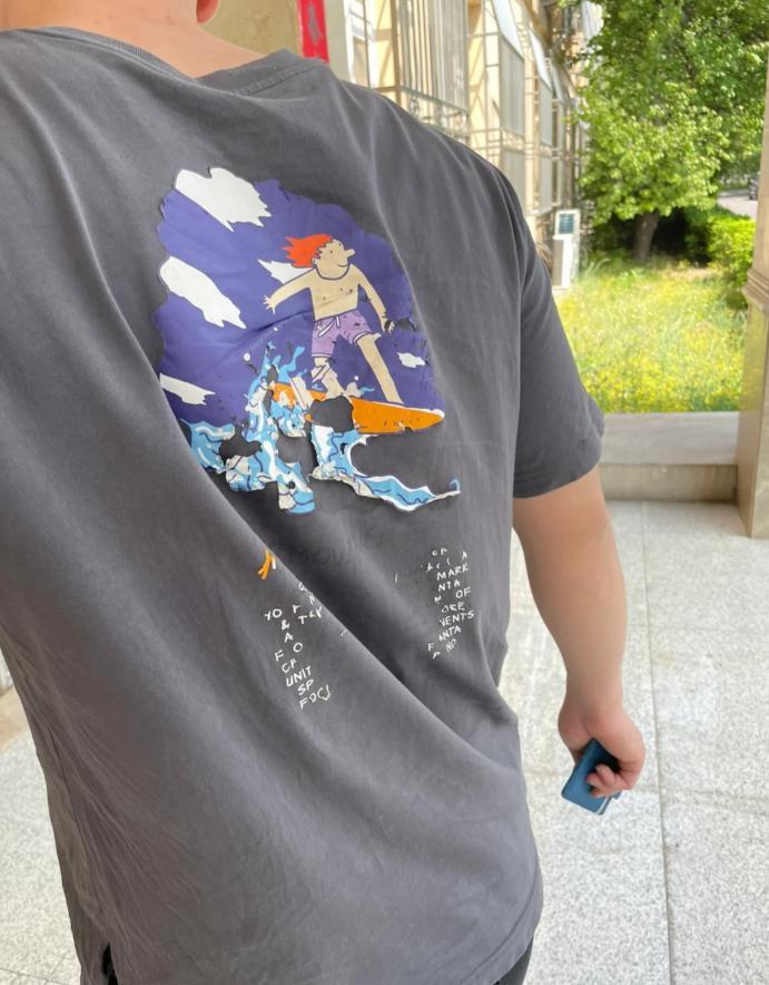 我老公衣服穿到破掉的,印花都掉了。我自己光鮮亮麗,也不是沒錢給他買衣服,但他強烈不要我給他買太多太貴的衣服。即使買了好的,他也會時常穿破洞的哈哈。
