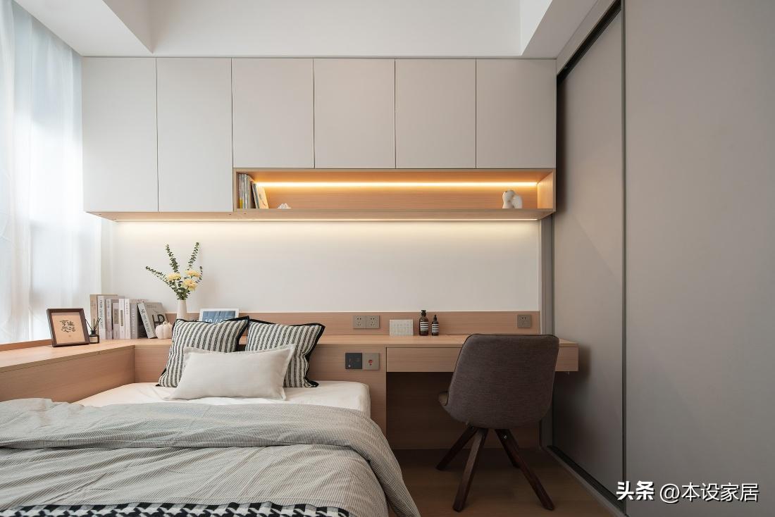 臥室面積不大,卻是阿姨休息和恢復精力的場所,除了衣櫃外,牀頭還定製了書桌和吊櫃,增加收納空間。
