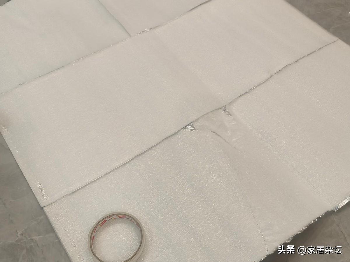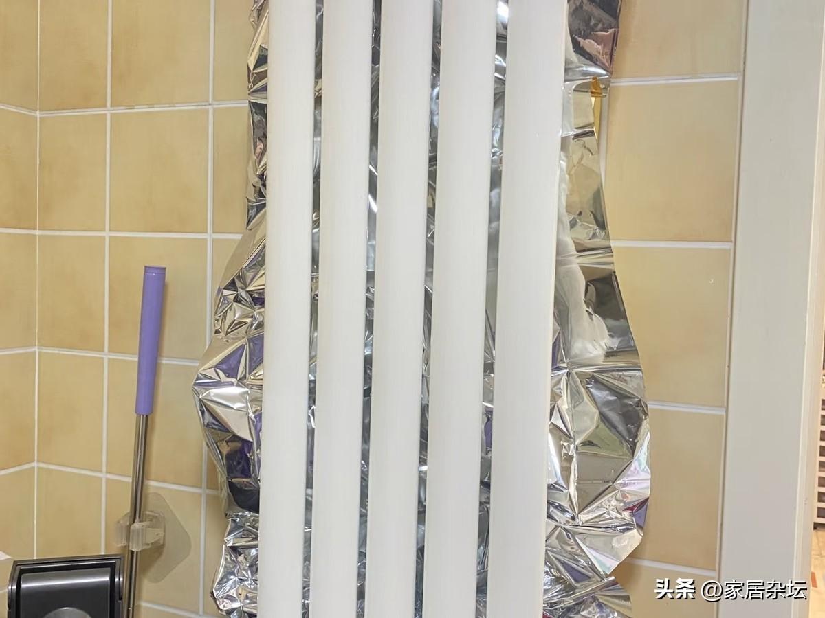 只需要將外賣保溫袋裁剪成合適的尺寸,然後將鋁箔面朝向房間貼在暖氣片或者是取暖器後面的牆面上就可以了。