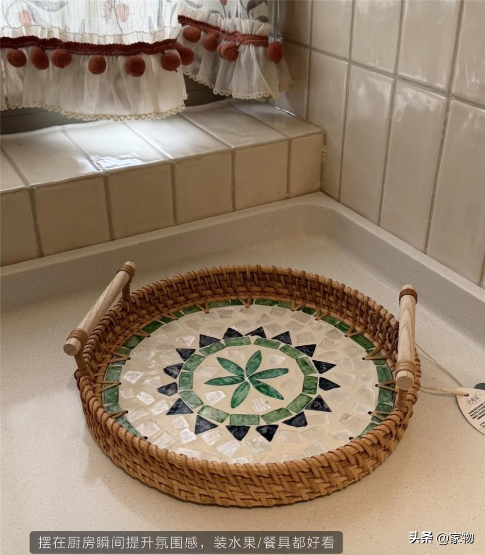 這種貝母藤編的托盤很多地方都有賣的,但我是真佩服胖東來的選品,不僅是全手工編制製作,同時藤編緻密,耐用性強,中間的貝母圖案也很有意思,基本都是對稱形狀且光澤度高,當做餐盤或者收納盤都沒問題。