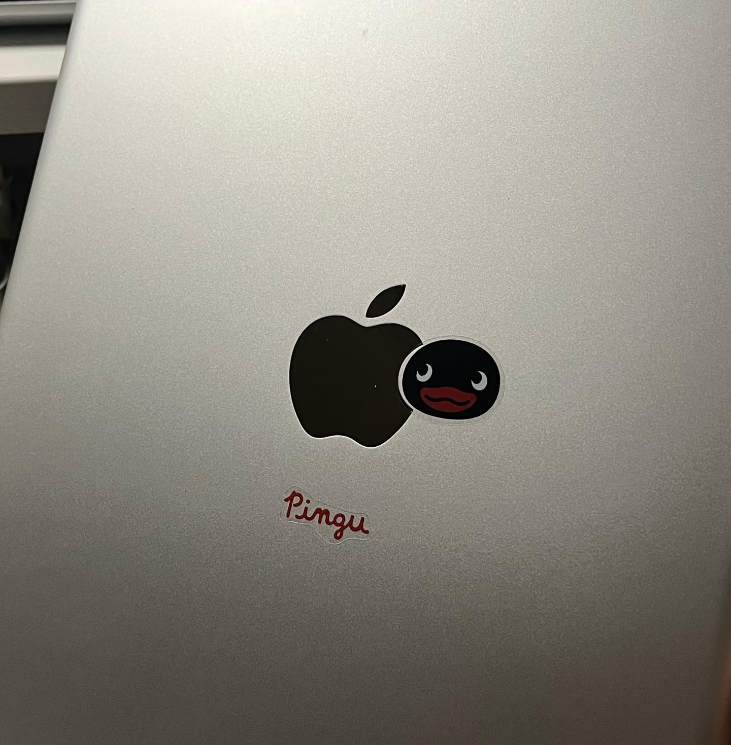 比如和pingu企鵝圓圓的臉蛋,嵌在一起還怪可愛的,發音還很像,蘋果長了pingu。順便問一句,pingu你們怎麼讀?“平菇”or“屁股”?