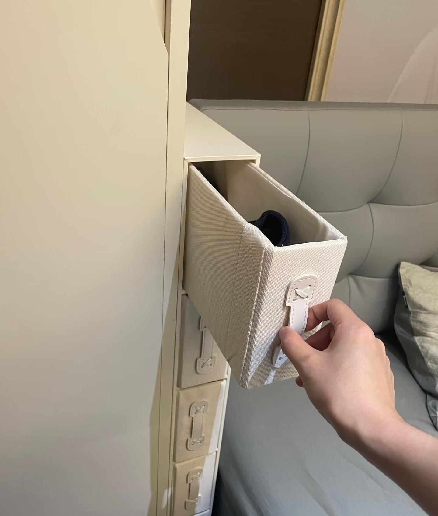 住友@ElfaHOME是典型的強迫症,牀邊那條窄縫空着難受,於是挑戰了夾縫抽屜,雖說定製下來不便宜,但就幸福感和使用程度來說,還挺爽挺值的。