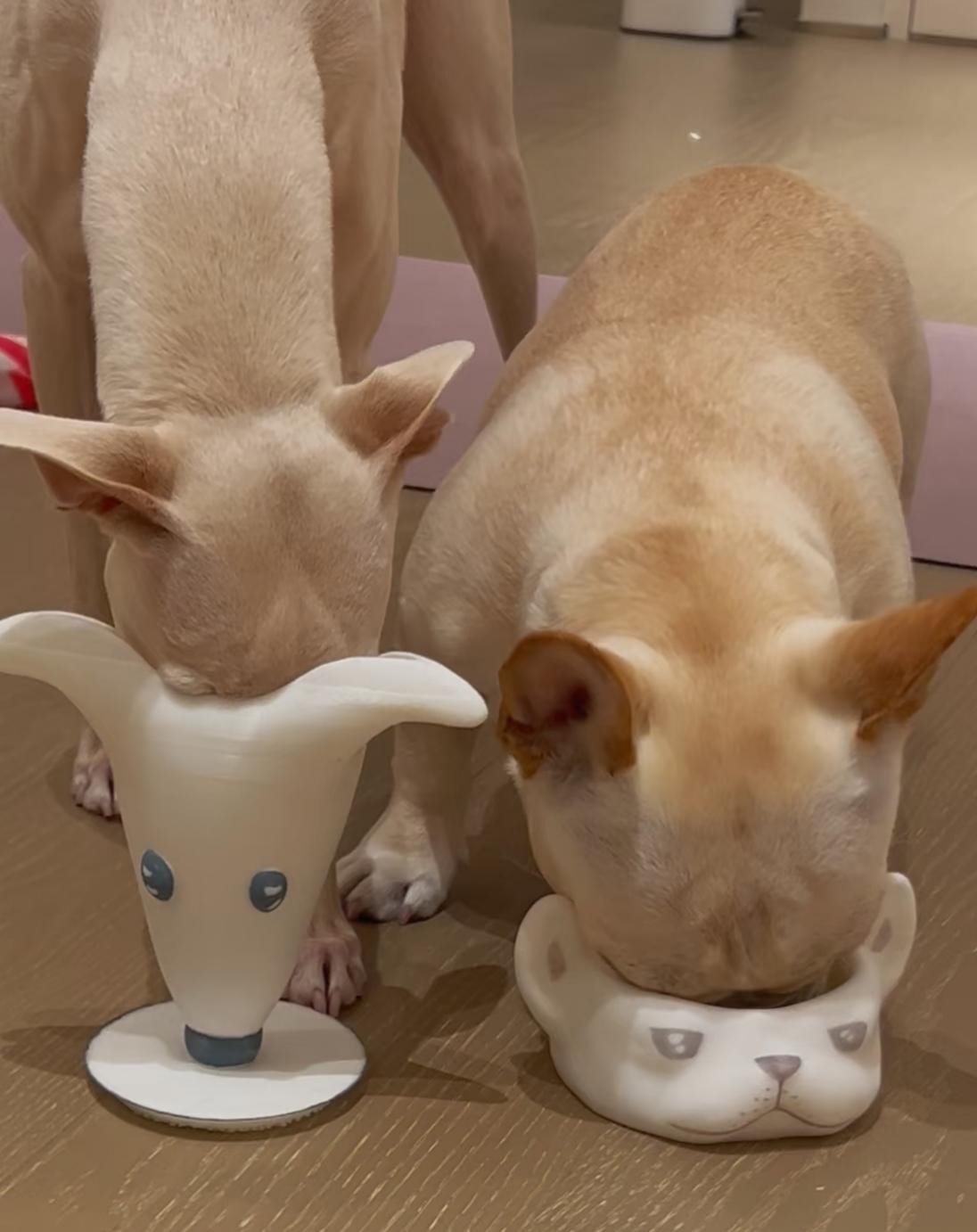 這兩個3d打印的狗碗,可以說非常符合狗體工學了,只是讓人感覺,這主人又不禮貌,又費心的。