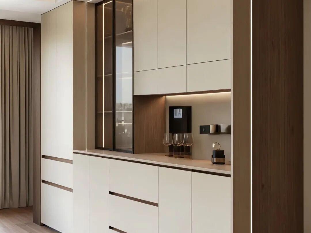 在櫃子的定製這一方面,像大多數家庭可能花的費用是15,000元到25,000元左右,使用的國產的優質板材。