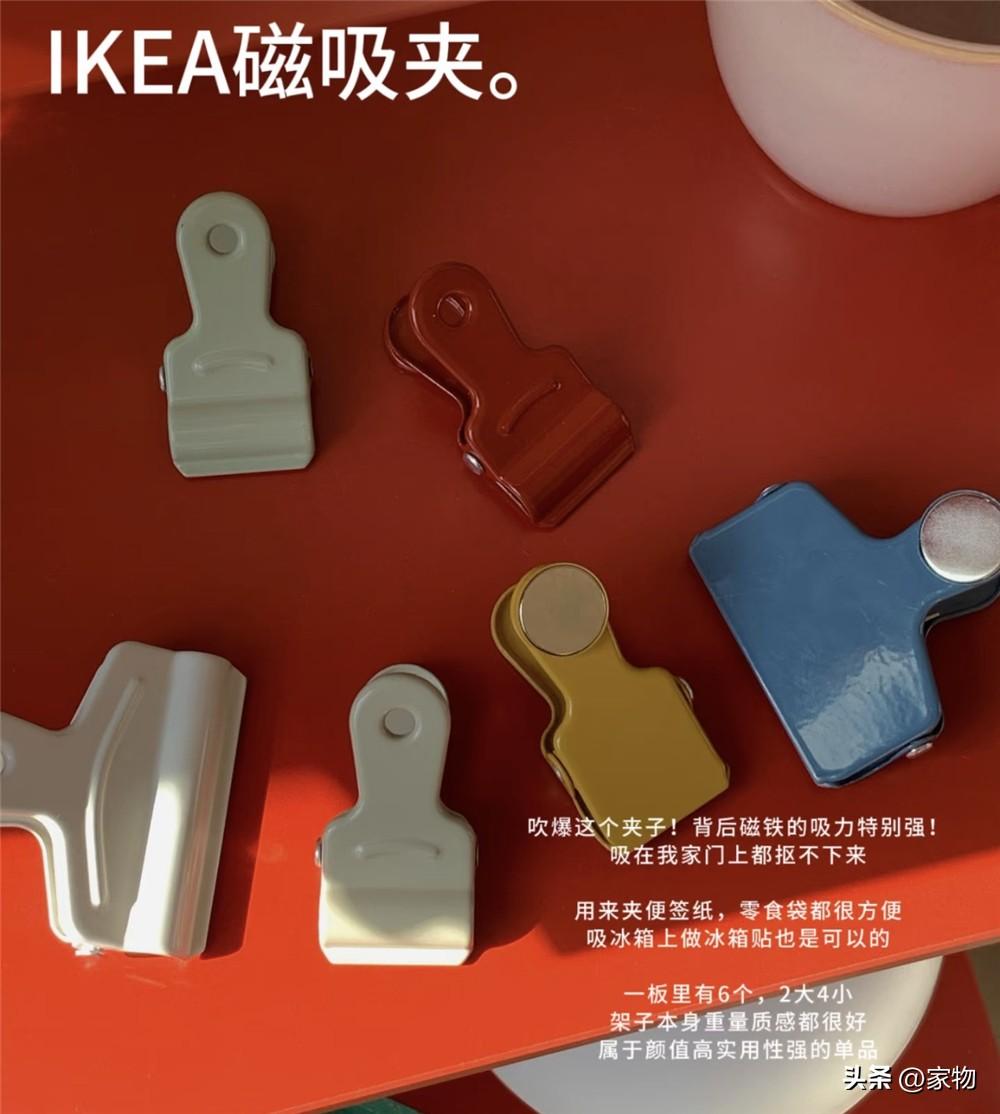 我真的要吹爆這組夾子!一板裏面有六個(四小兩大),顏色各異,而且夾子頭的位置還有防滑設計,最關鍵的是,每個都帶磁吸扣,可以吸附在冰箱門或者家裏防盜門上,當做收納、固定備忘頁的夾子,好用極了。