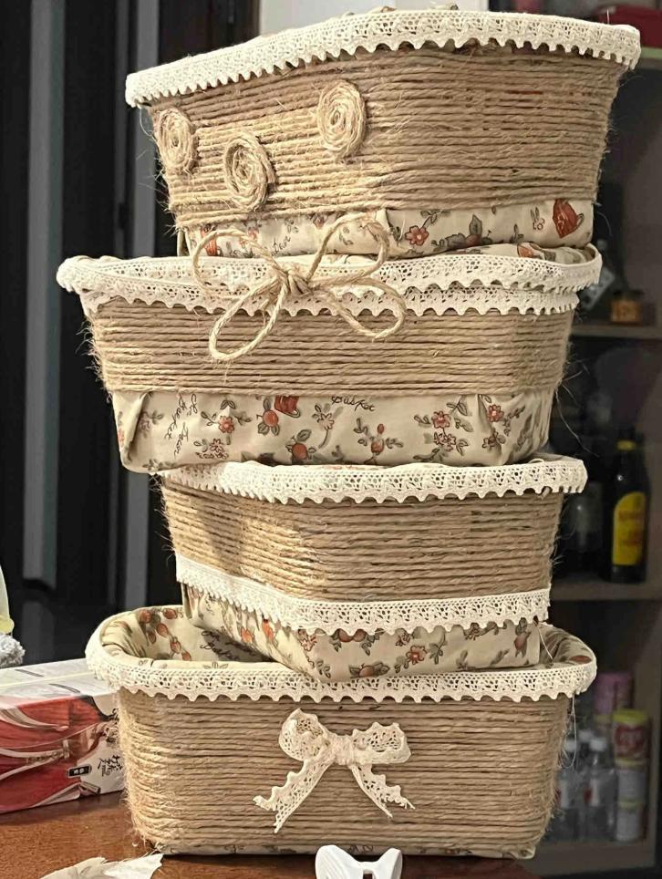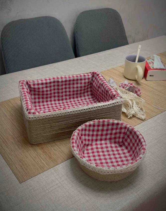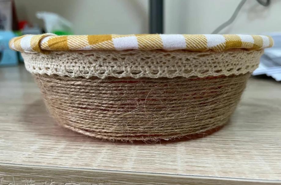 長方形草莓筐的製作步驟也比較簡單,跟着博主@丸子酥肉丸來學,準備好:布料、麻繩、花邊和熱熔膠,按照圖示動手做就可以了。(這個博主的做法是不用針線,直接用熱熔膠粘貼固定)