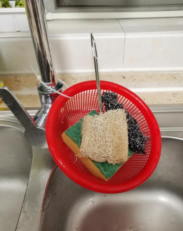 這樣一來鋼絲球、絲瓜瓤、海綿擦終於有地方收納了!