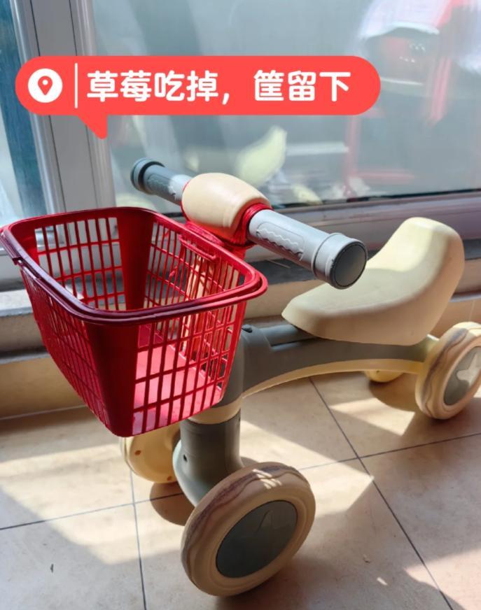 家裏有這種小寶貝車子的,還有那種平衡車,基本都沒有車筐,這下有了草莓筐就可以自己動手裝上了!