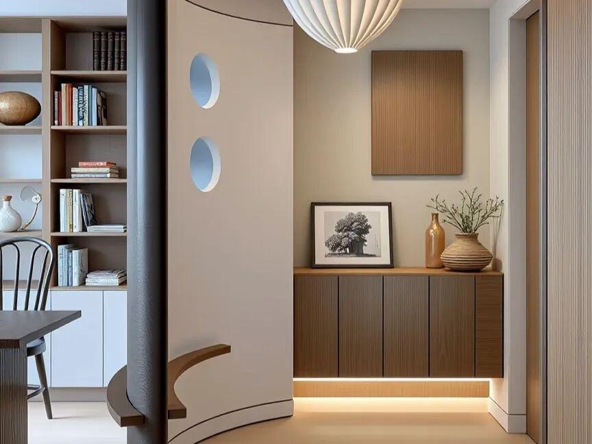 通透長虹玻璃啊可以營造分區,一進門就有一個清晰的過渡區,避免開門見山的突兀感。而且,能夠完美引入來自客廳窗戶的自然光,不會讓這個空間顯得壓抑,特別適合小戶型。