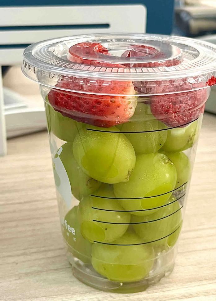 不管是上班族,還是出去遊玩,我覺得都可以用洗乾淨的奶茶杯子來裝點水果,不僅方便攜帶,而且也很乾淨。