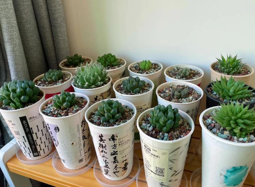 如果說養花當花盆用,奶茶杯子有點小的話,那拿來養多肉植物簡直就太合適了!