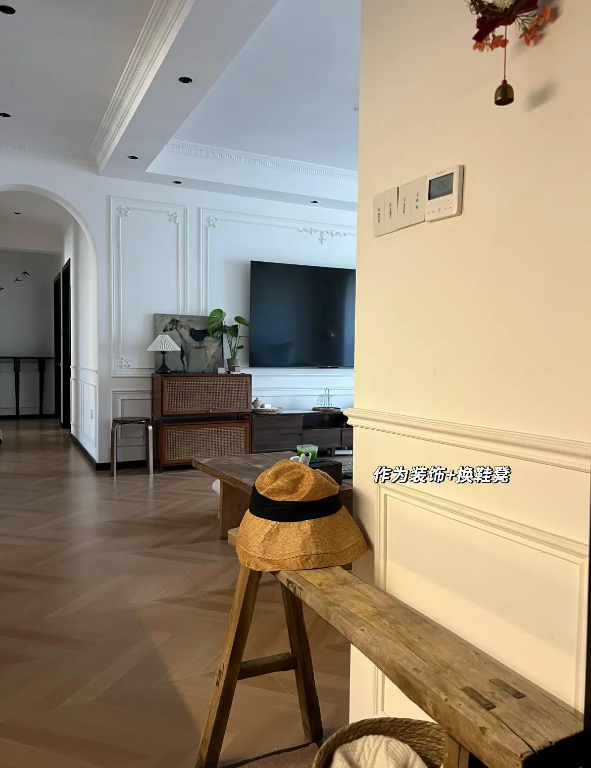 再長一點的凳子,則可以洗乾淨放玄關,既是復古裝飾,也是換鞋凳。