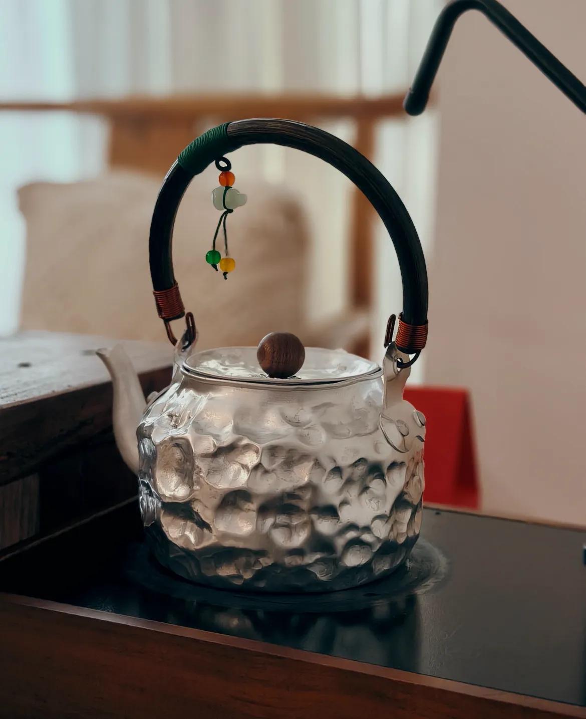 但網友@高賴賴偏不!她拿羊角錘輕輕敲出錘紋肌理,然後再換個把手,灰撲撲的舊水壺,秒變高檔銀器既視感,看着也太有質感了!