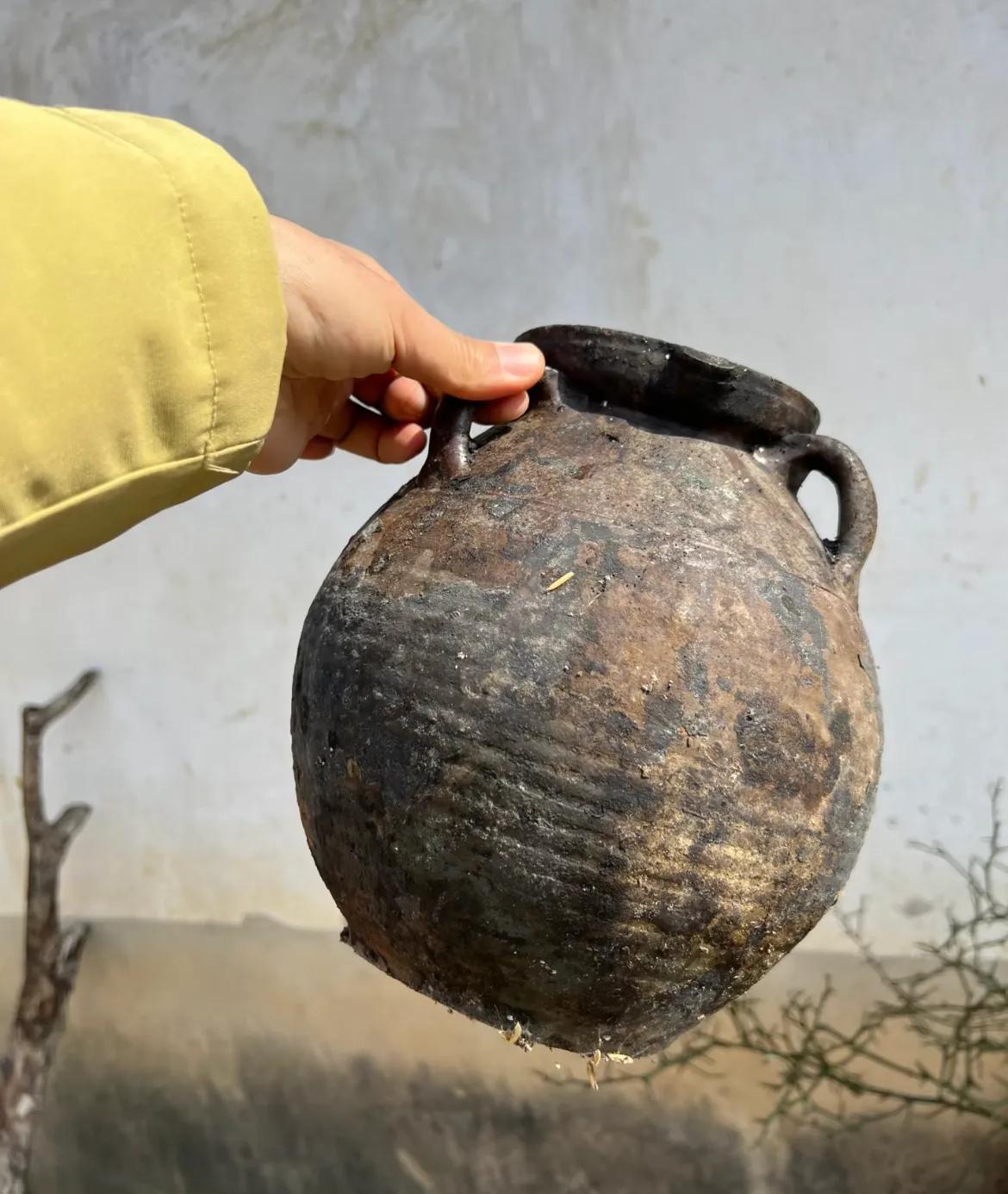 網友@張呆瑞,印象中的老家院牆邊,都會有幾個粗陶罐,或許之前存過米,醃過鹹菜,但如今肯定都是廢棄了。