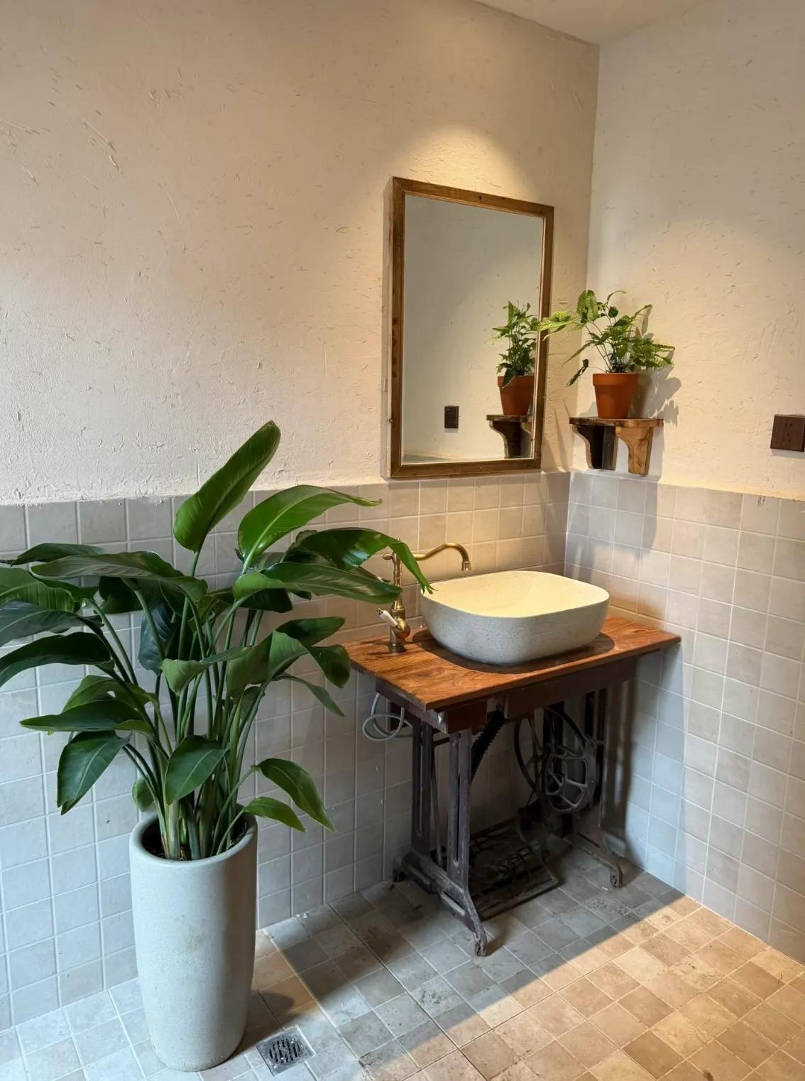 她直接拆空機身,放上臺上盆,做成了洗漱臺,你還真別說,有審美、無違和還有創意,誰來了都忍不住想多看兩眼。