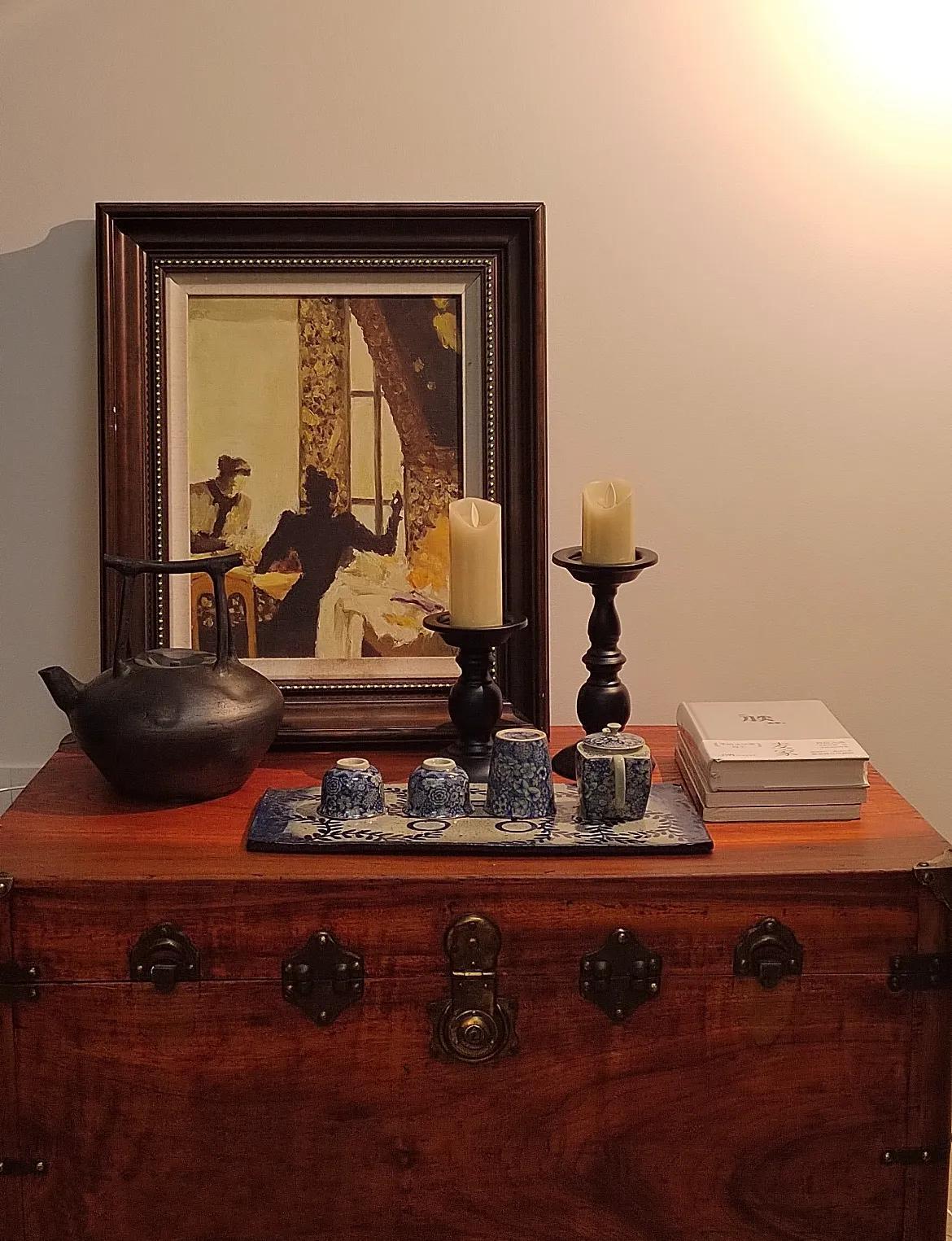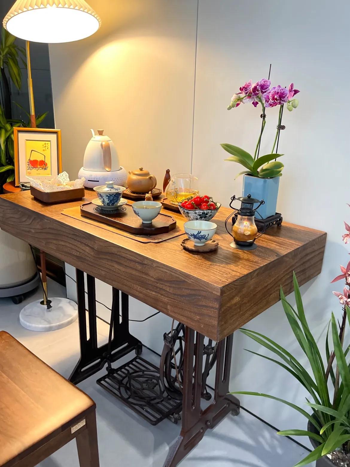 所以我選擇將父母用過的縫紉機,改造成了茶臺,改造過程超簡單,定製一塊榆木蓋板訂上去,每次泡茶,都像在和爸媽隔空對坐。