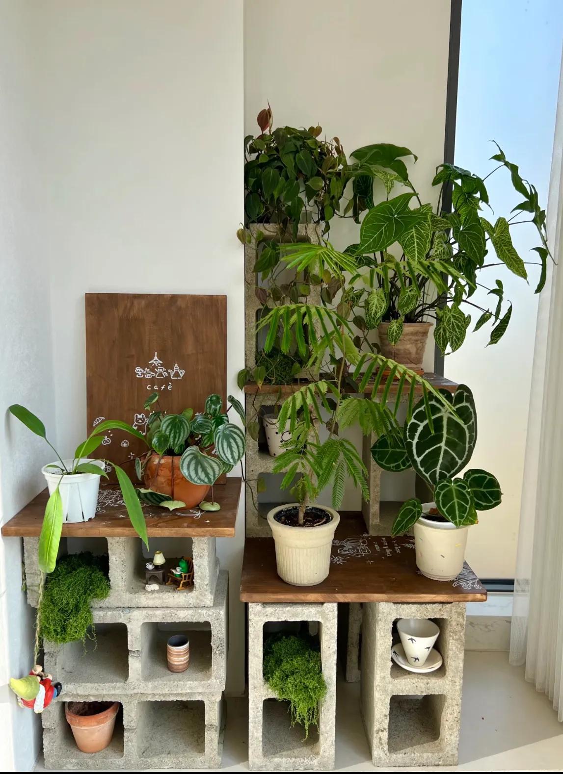 放上花盆,有質感,又耐看耐用,陽臺立刻就有了“老院子”的味道。