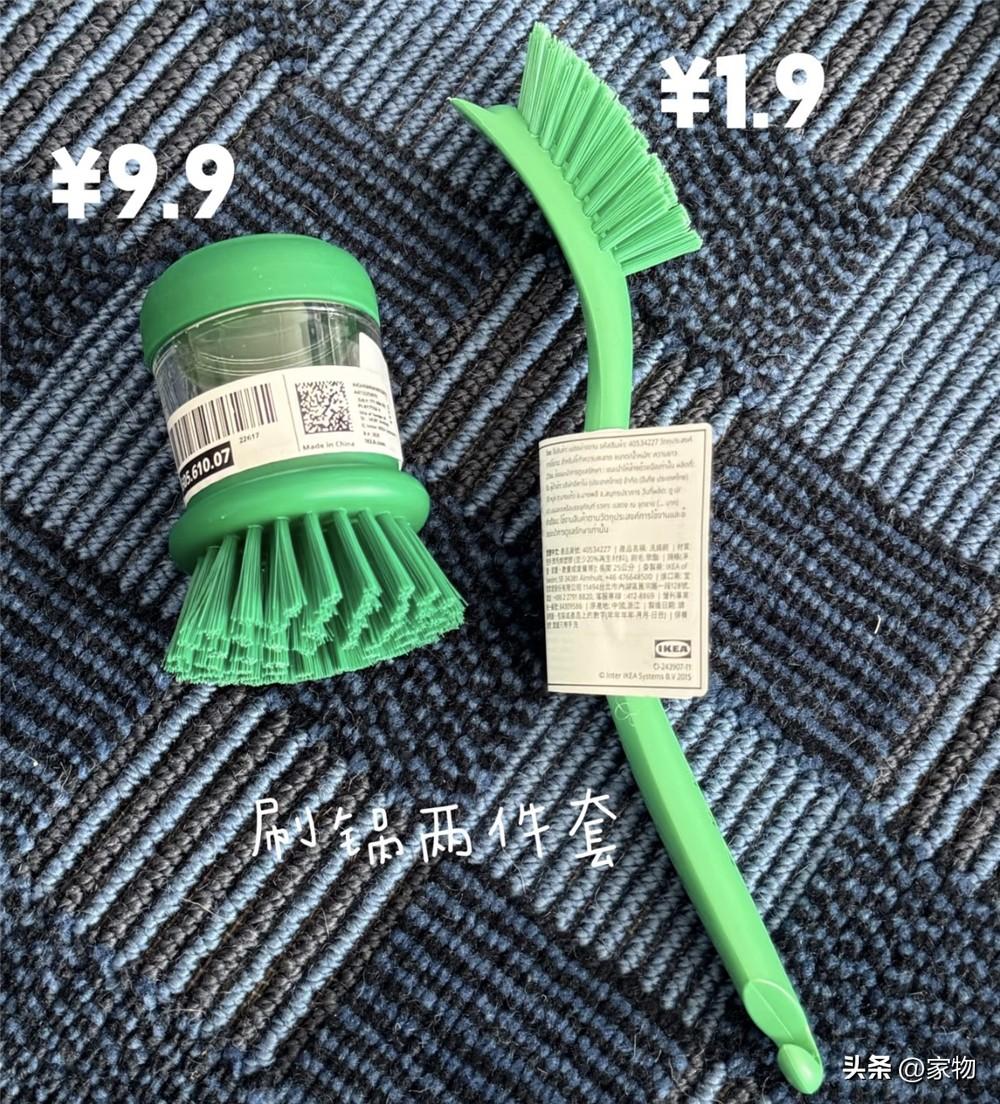 先說這長柄刷,才一塊多,尾端帶個掛鉤,刷洗鍋具特別順手;再說這握刷,裏面有個儲存洗潔精的小瓶子,頂部還有個按壓位,輕輕一按就能出液,刷鍋刷碗都方便。