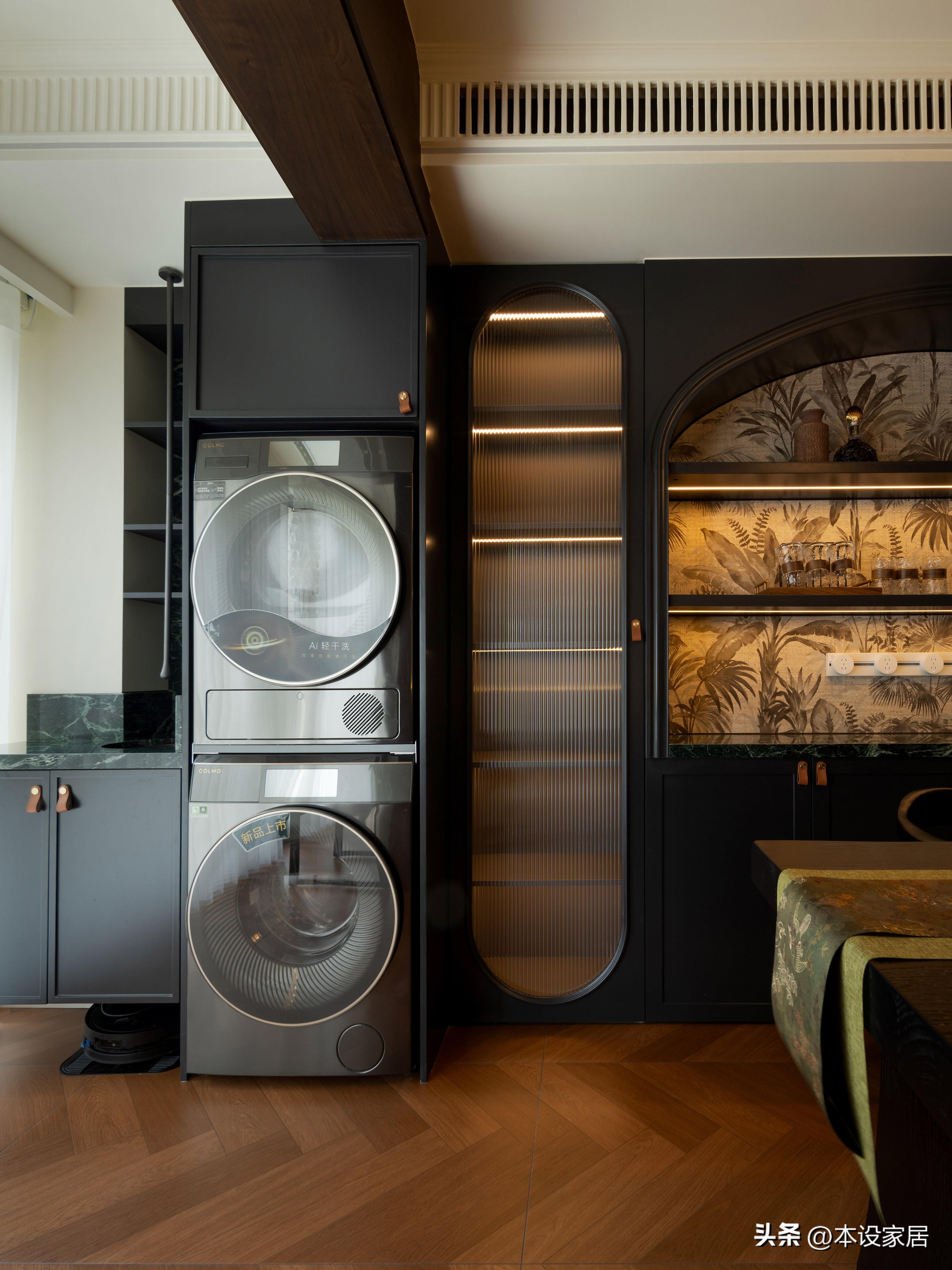 陽臺安裝洗烘機,整體感強,整潔又高級。