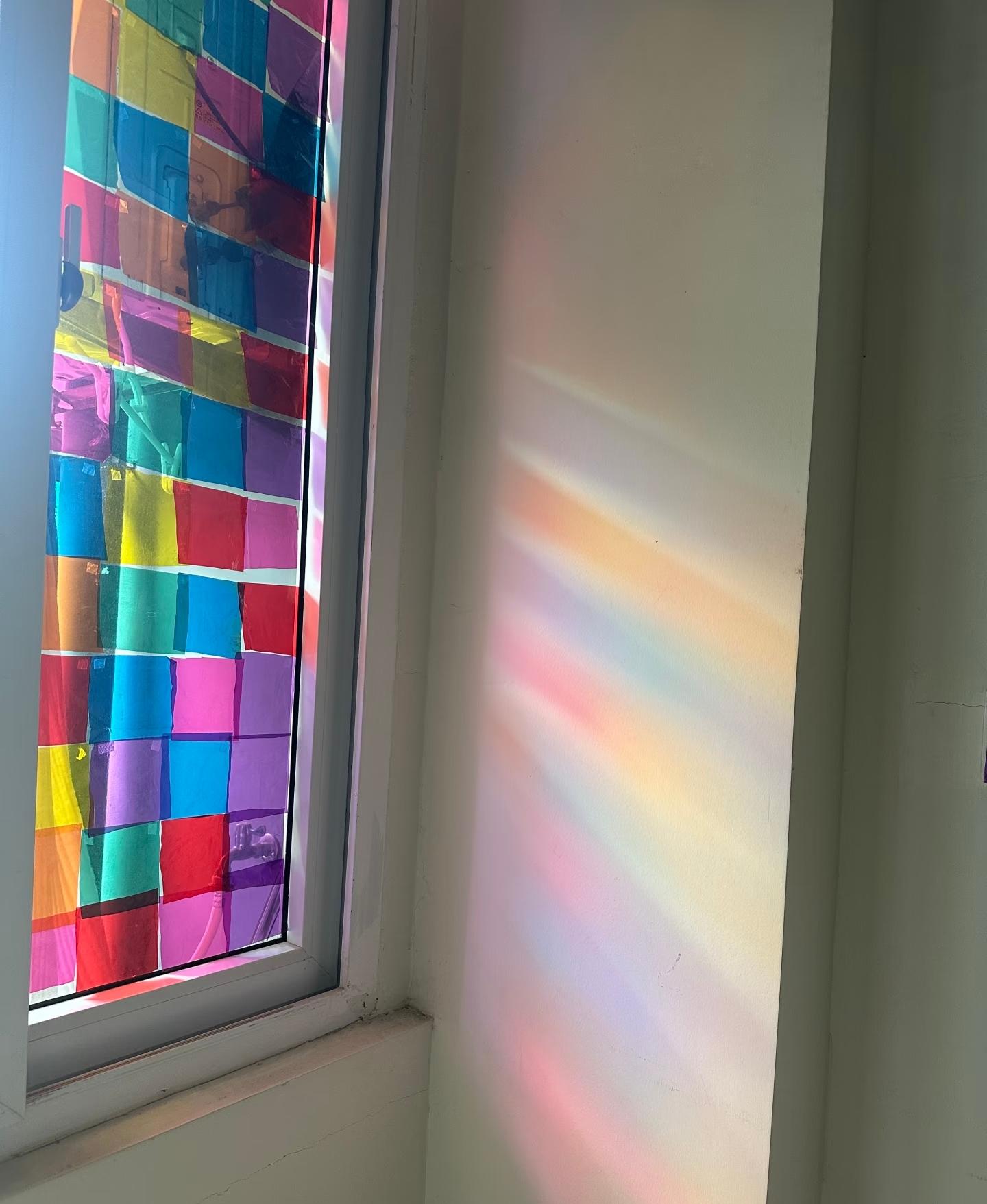 祕訣就是彩色玻璃紙,能把普通的光線轉化爲流動濾鏡,有被夢幻到。
