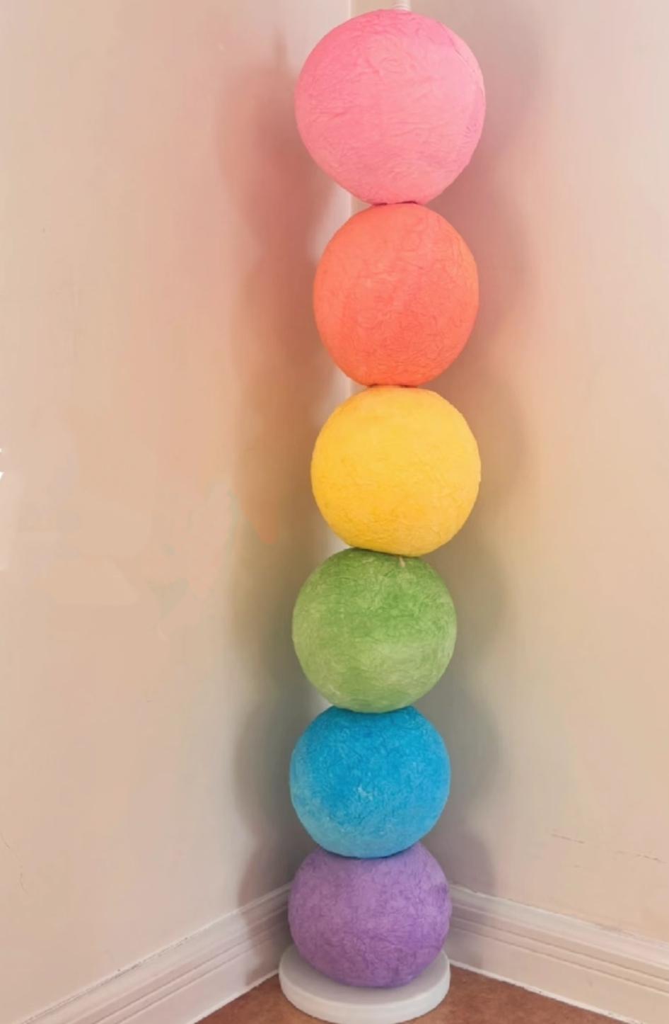 ④幹了後戳破氣球,最後把外殼用杆子串起來,附近有插座可以塞一條燈帶。