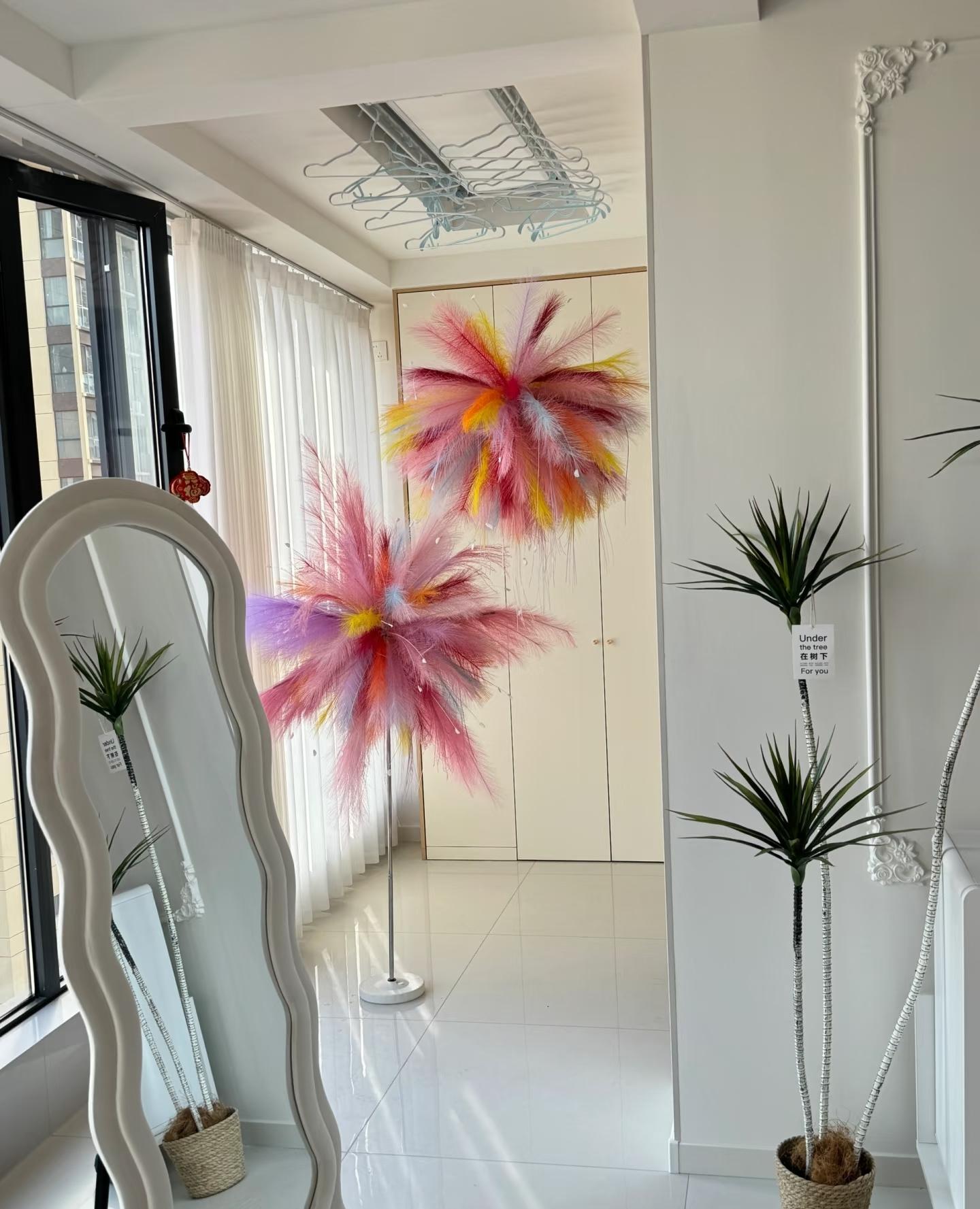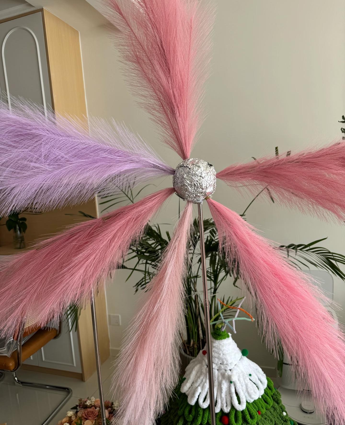 焰火的材料用的是仿真蘆葦、蒲葦等,它們的穗子蓬鬆舒展,顏色豐富,一簇簇炸開的樣子,就像凝固的煙花。