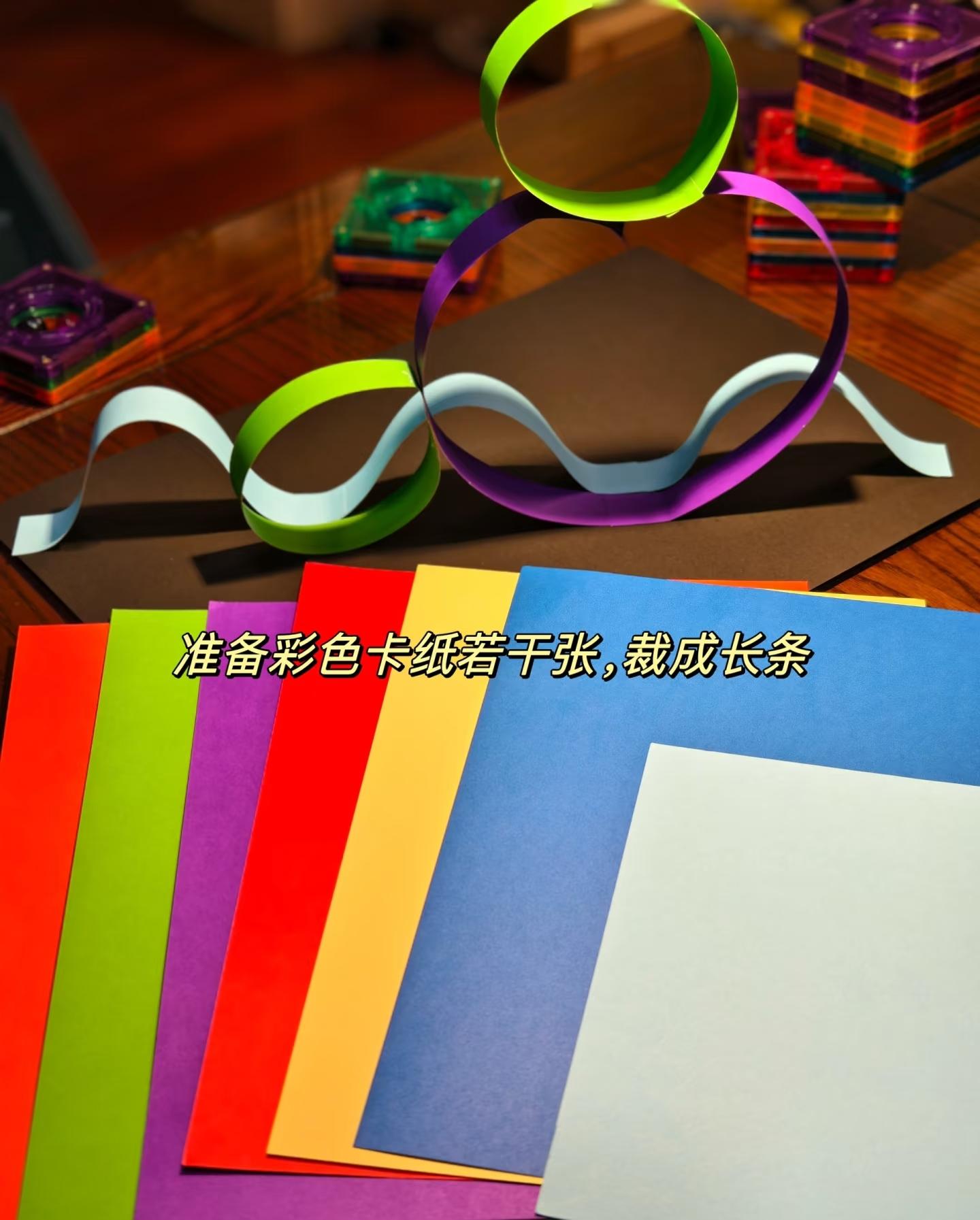操作的時候,完全可以變成一段高質量的親子時光。把卡紙裁成長條,再一起通過穿、疊、拼接,琢磨出不同的造型。