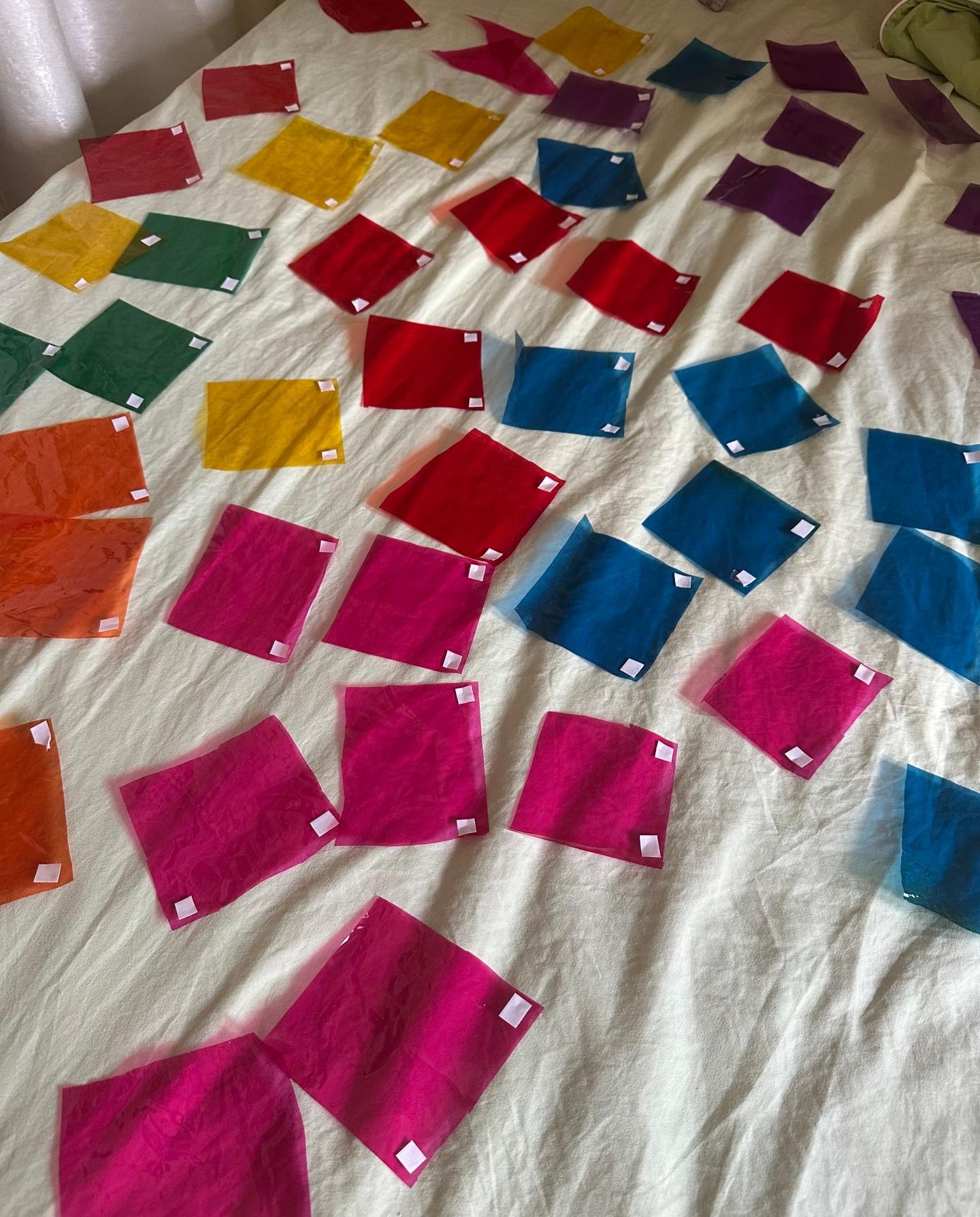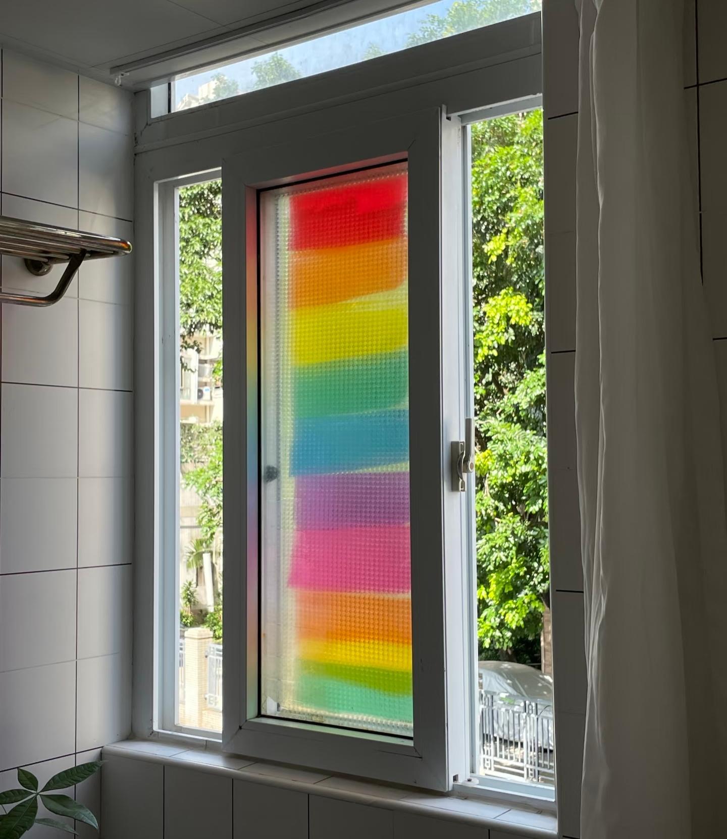 還能有不同方式,長條玻璃紙按照彩虹色順序排列,效果更哇塞!