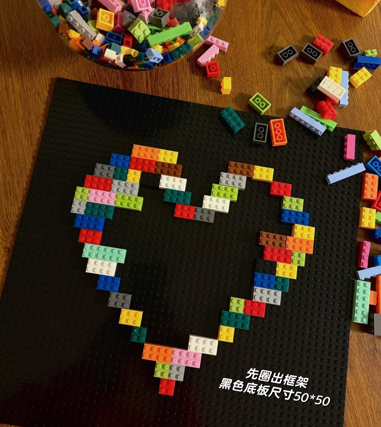 做法就是先在黑色底板上圈出框架,樂高的色系豐富,其實每一塊都挺好看,搭配難度不高;