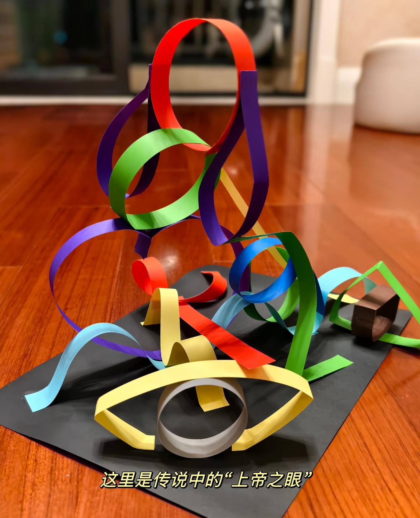 說到家裏的彩色佈置,孩子總能參與一角,像這種卡紙搭建,做好後可以擺在家裏,成爲跳躍的裝飾。