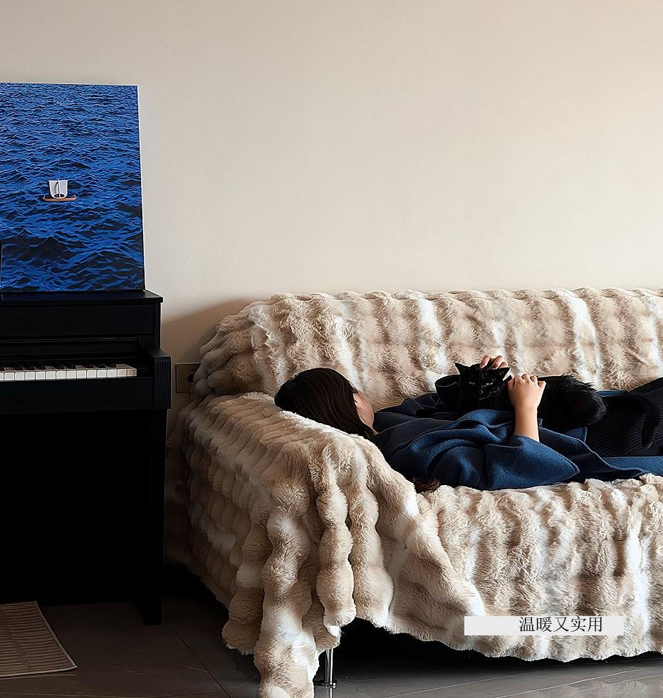 冷冰冰的皮沙發或木質沙發,一點想窩進去的感覺都沒有,而一條超柔的“兔兔絨”蓋巾就能改變一切。