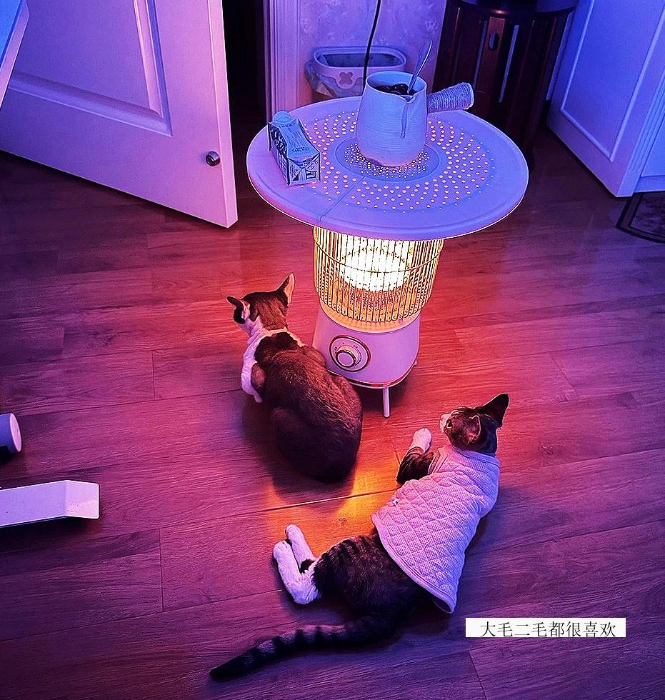 它下面是像電取暖器一樣的,打開暖暖的燈光,看着就感覺心裏暖烘烘的。