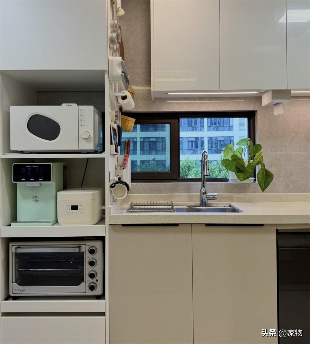 別的不說,像是烤箱、微波爐這類小電器,完全可以集中收納在這高櫃內,將縱向空間充分利用起來。