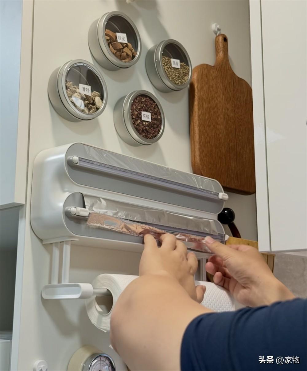 我得着重誇一下這種三層式的保鮮膜+錫紙+廚房紙架,無論是磁吸吸附在這金屬板上,還是貼在廚房牆面的其他位置,都超實用,拿的時候順手一撕,毫不費力,你說這東西是誰研究出來的呢?好用,愛用,以後還要一直用!