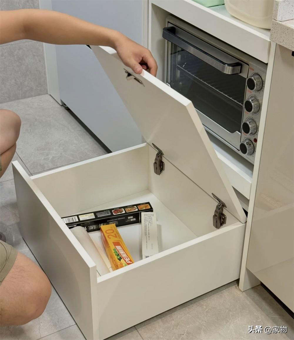 比如這平時在櫃子下面當抽屜、收納格收納廚房備用品和雜物的抽拉櫃,不浪費空間的同時還能一物兩用。