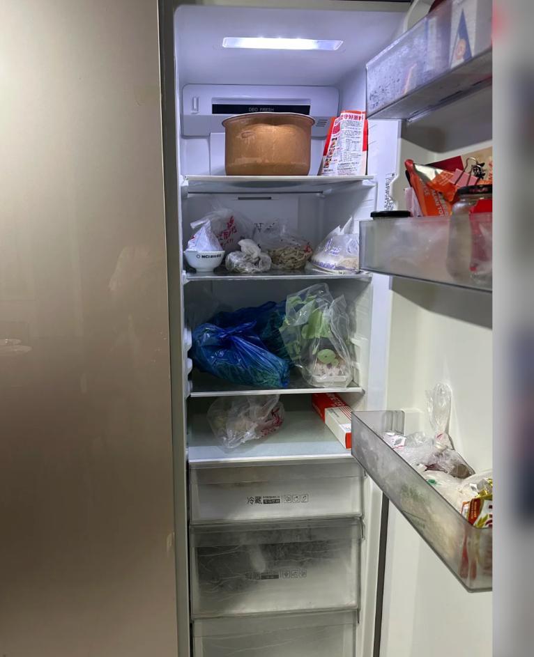 這個估計大家都有體會,一字對開門的結構是左側是冷凍區,右側是冷藏區,甭管哪個分區,直徑都太短,你放一個長梗的蔬菜都得折斷。