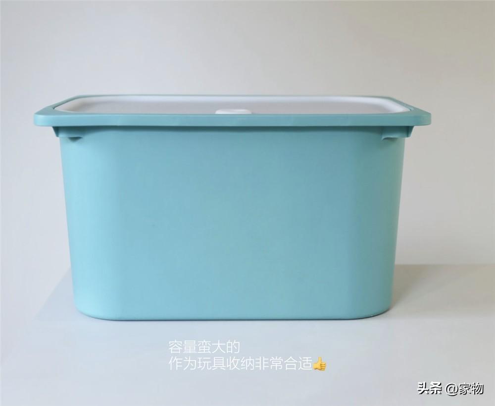 容量足夠大(42*30*23),價格足夠便宜,當做孩子的玩具箱、積木箱超級合適,如果怕積灰落塵的話,也可以配一個它專門的蓋子,同樣沒幾塊錢,在收納箱越來越貴的今天,它已經算是極具性價比的選擇了。