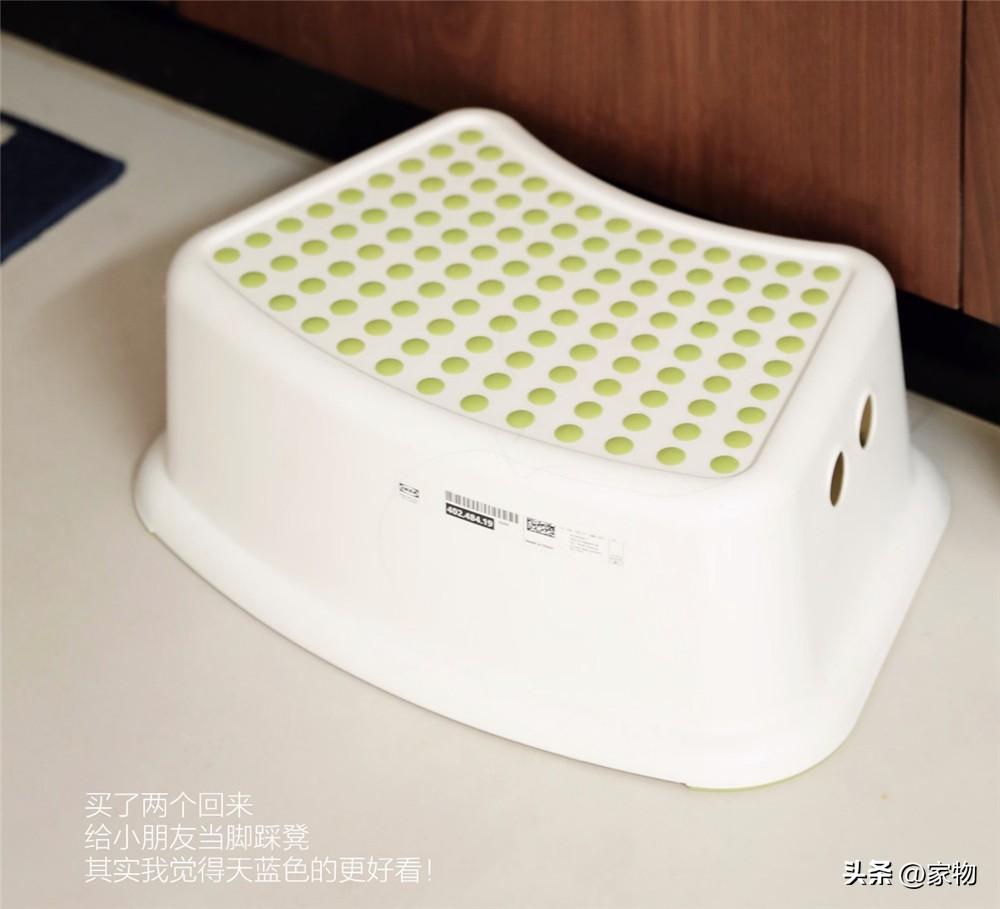 最後就是這個墊腳蹬啦,以前很多人拿它當如廁時的墊腳蹬(確實噗噗更通暢了),但其原本就是作爲孩子登高、學習洗手的小凳子,底部有防滑條,面上還有防滑膠點,穩當得很。