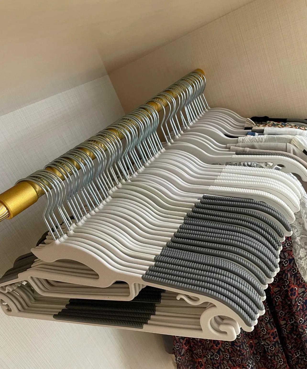 看着雜亂不說,那種傳統衣架,用着也容易讓衣服變形。