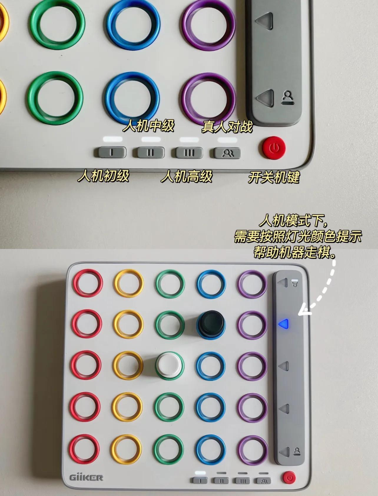 ai的部分在於,會有燈光顏色提示幫助機器走棋,所以也能一個人自娛自樂。