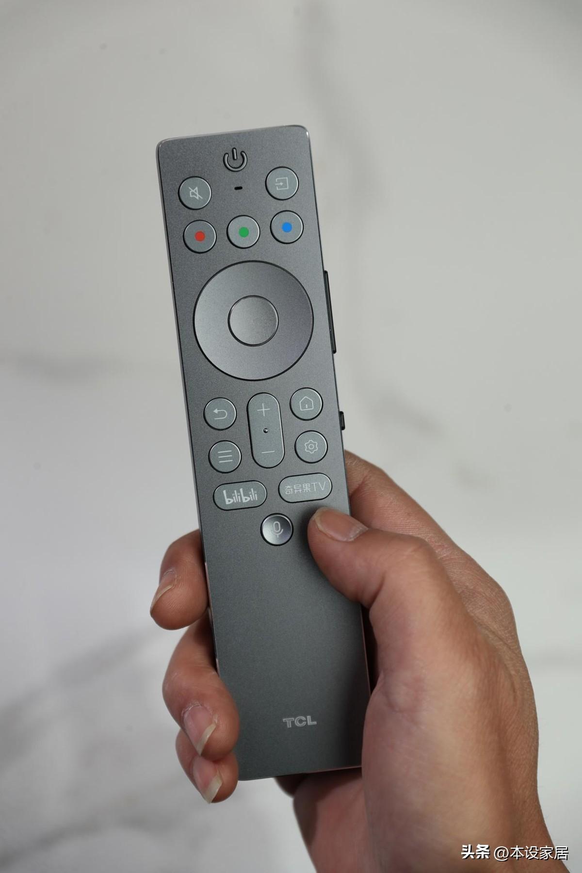 遙控器更是細節拉滿!金屬面板質感在線,還帶自動感應背光,半夜摸黑找按鍵再也不用瞎摸索,按鍵背光自動亮起,精準定位。側邊有獨立調節鍵,一鍵切換圖像模式,遊戲、觀影、音樂模式無縫切換,還自帶B站、奇異果專屬直達鍵,追劇黨不用層層點進APP,一鍵直達快樂源泉,自定義快捷鍵還能設成常用功能,操作效率直接翻倍。
