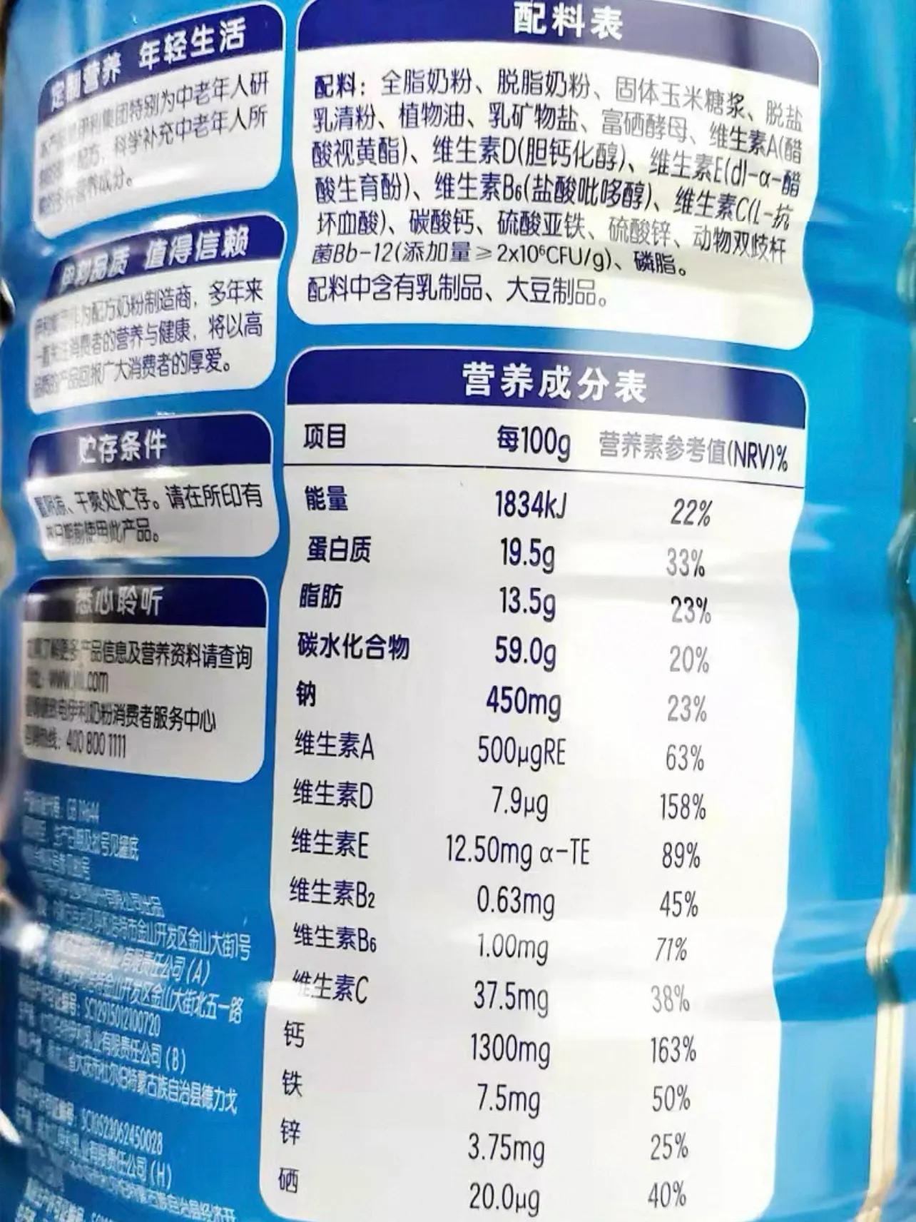 另一個就是高鈣,含量是1300mg/100g,老年人普遍缺鈣,每天喝兩杯,大概能滿足每日鈣需求的65%,再加上曬太陽、運動,抽筋的概率也會有所減少。