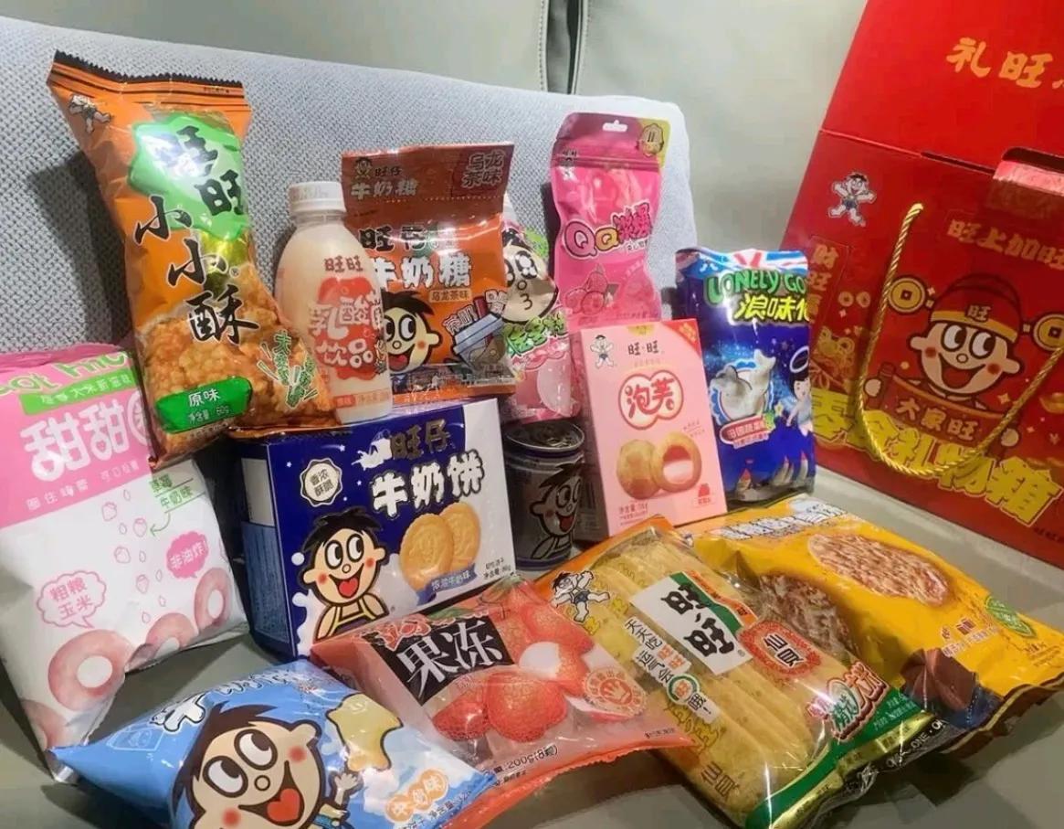 一整個旺旺經典零食,果凍、餅乾類、糖、棒冰……全安排上了。
