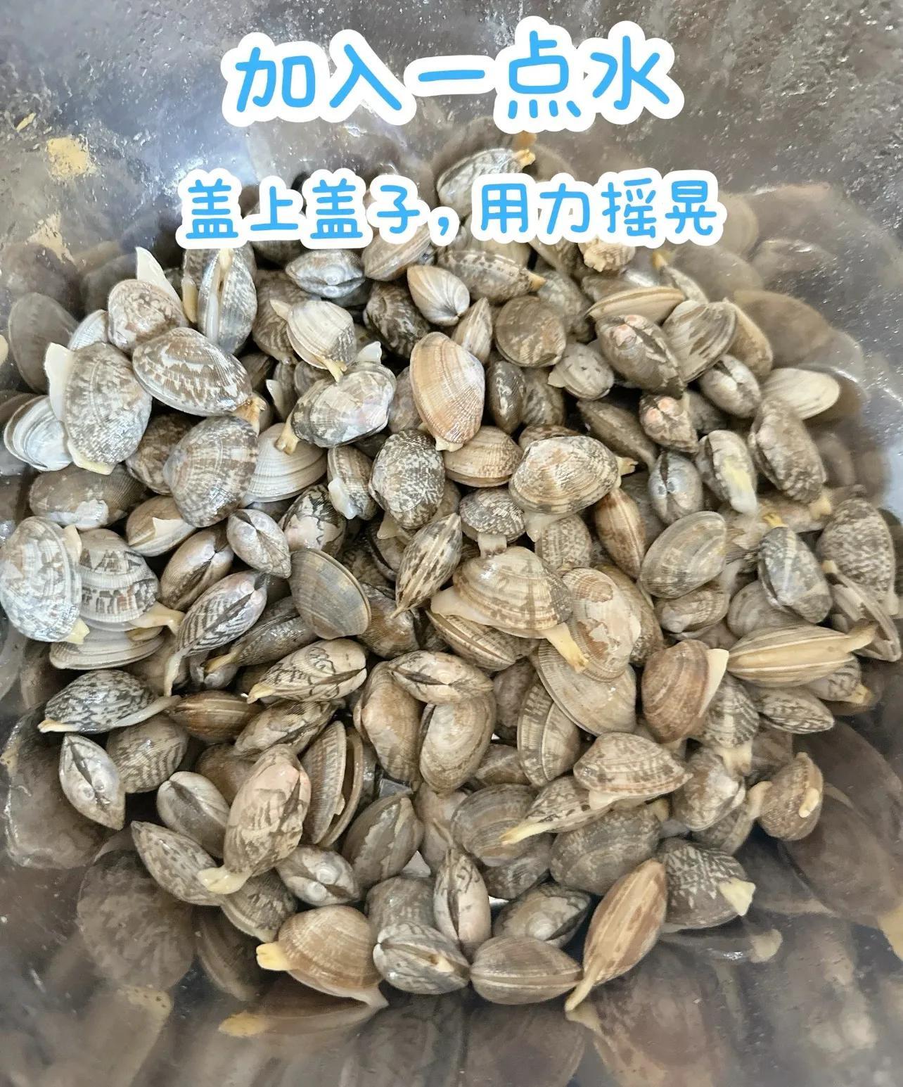 2、貝類:「龍頭猛衝、料酒抓洗」不如「浸泡靜待」